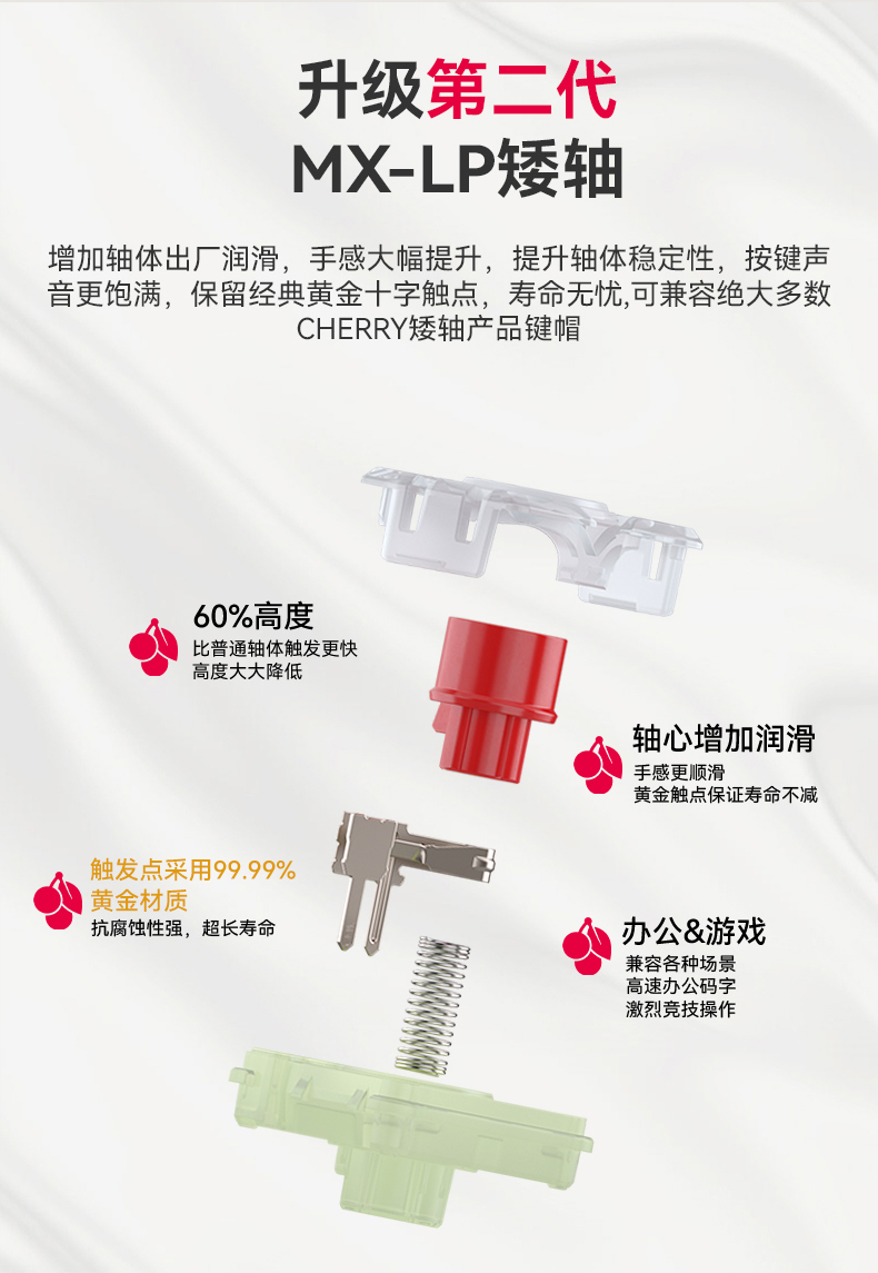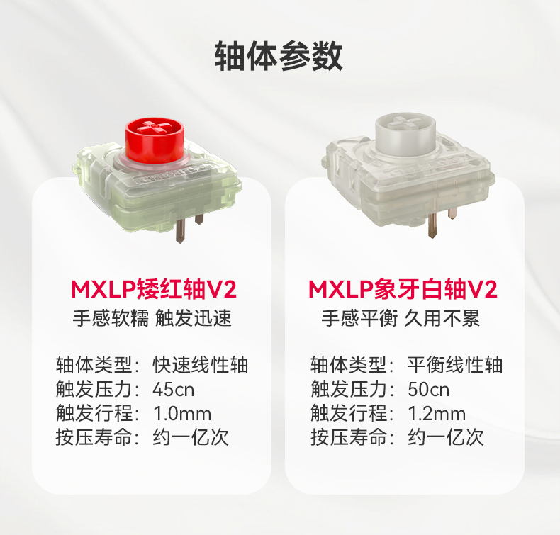 · 第二代MXLP矮轴,增加出厂润滑,更舒适更安静