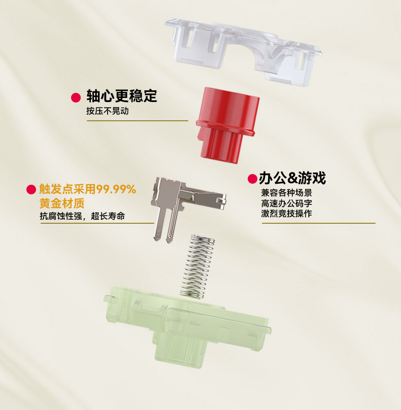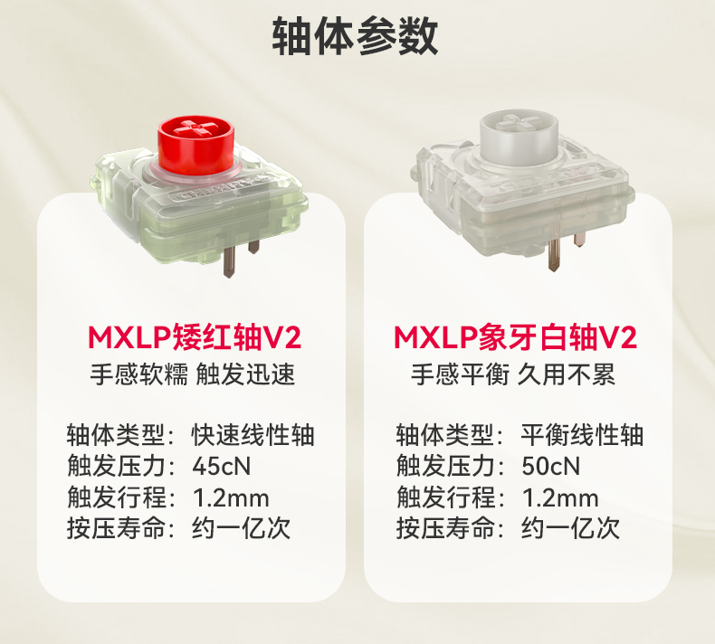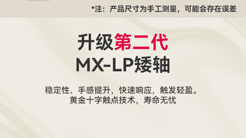 · 升级第二代MX-LP矮轴,轴心更稳固
