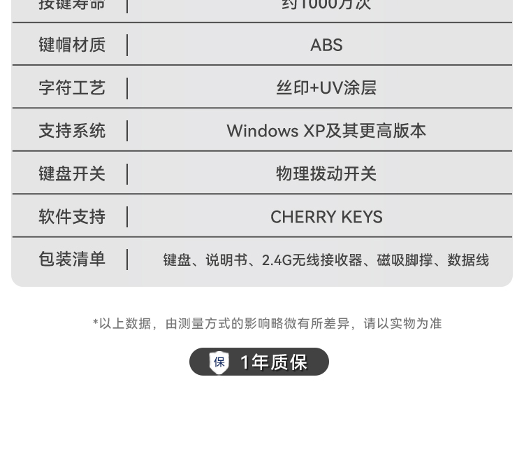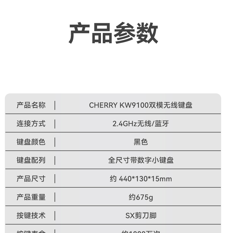 · 樱桃剪刀脚按键,1000万次使用寿命